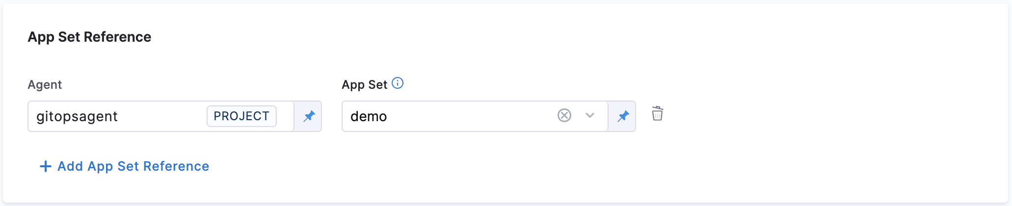 You can also reference an App Set by clicking on the Reference App Set option and configuring the Agent and the app set reference.