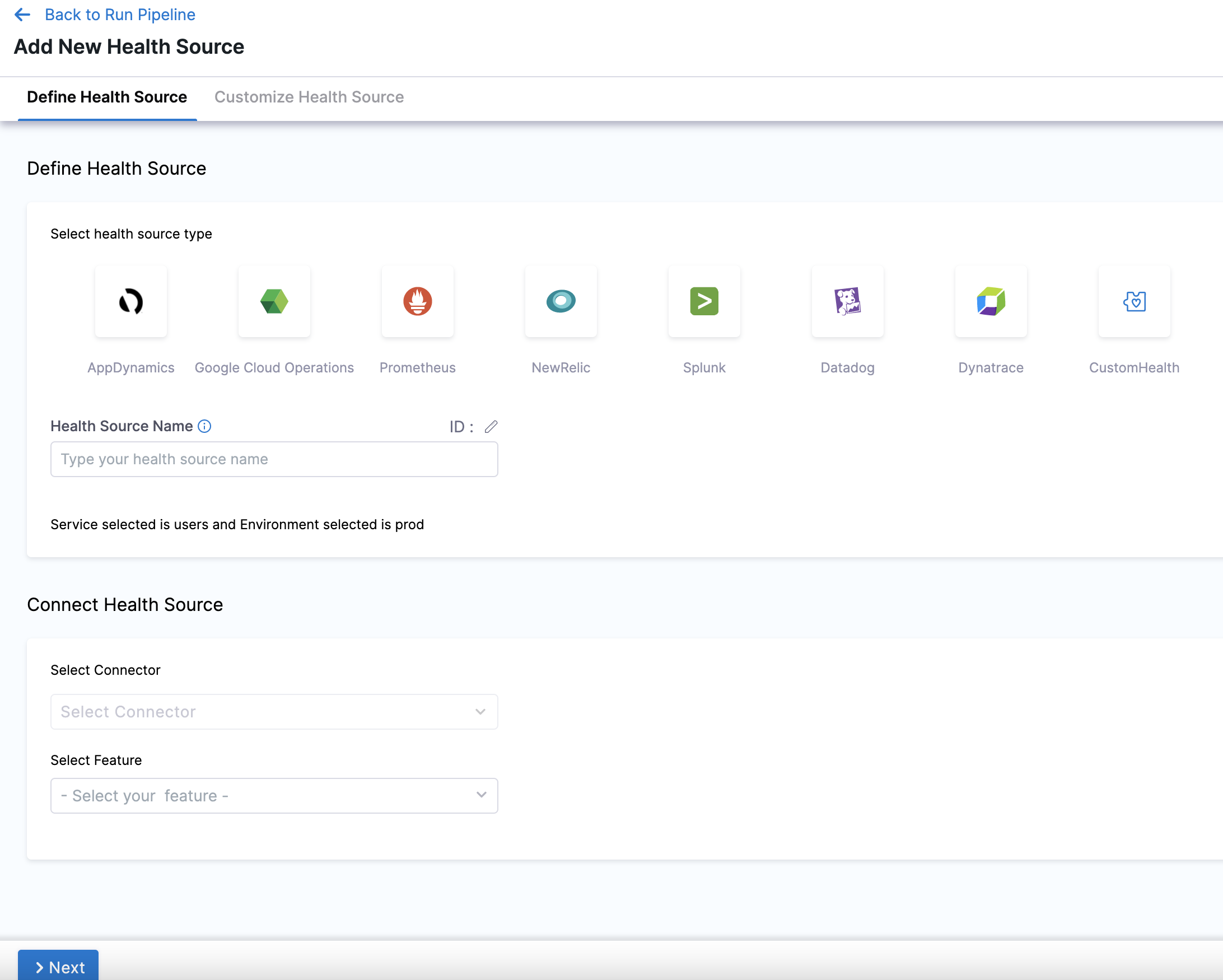 A Health Source is basically a mapping of a Harness Monitored Service to the Service in a deployment environment monitored by an APM or logging tool.