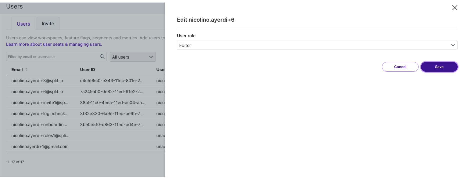 • Editor: Users with the Editor role can modify objects like feature flags and segments. They also can approve or reject change requests.