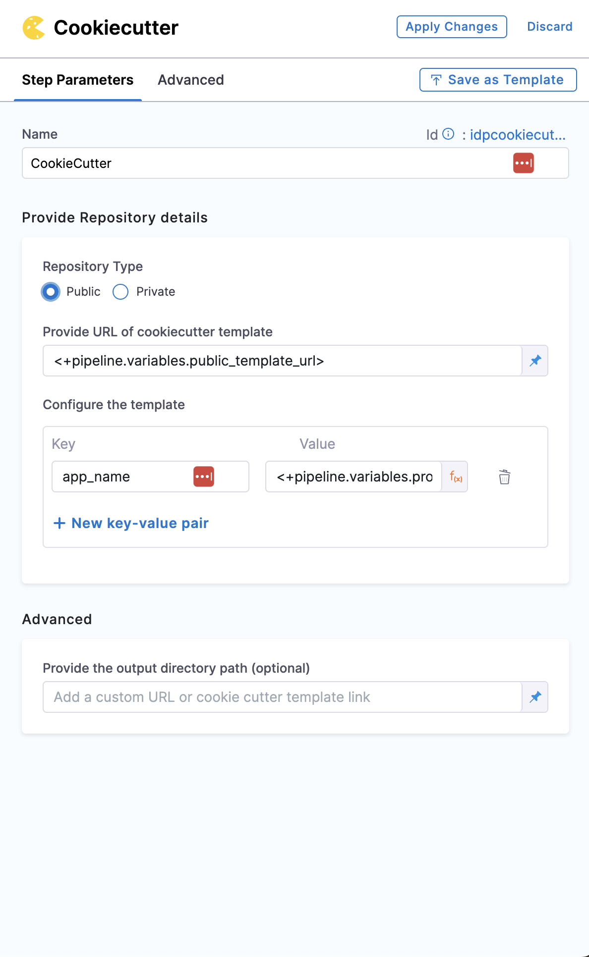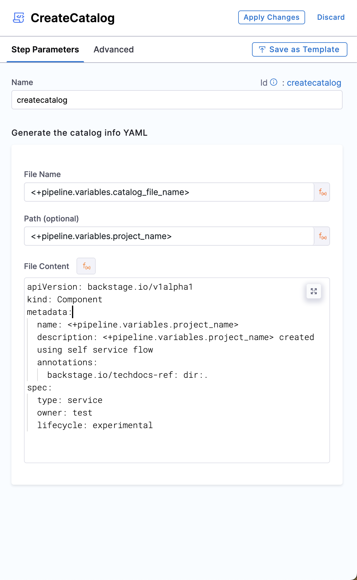 3. directPush: Used to push the service/application created using Cookiecutter step along with the catalog-info.yaml in the repo you created in previous step.