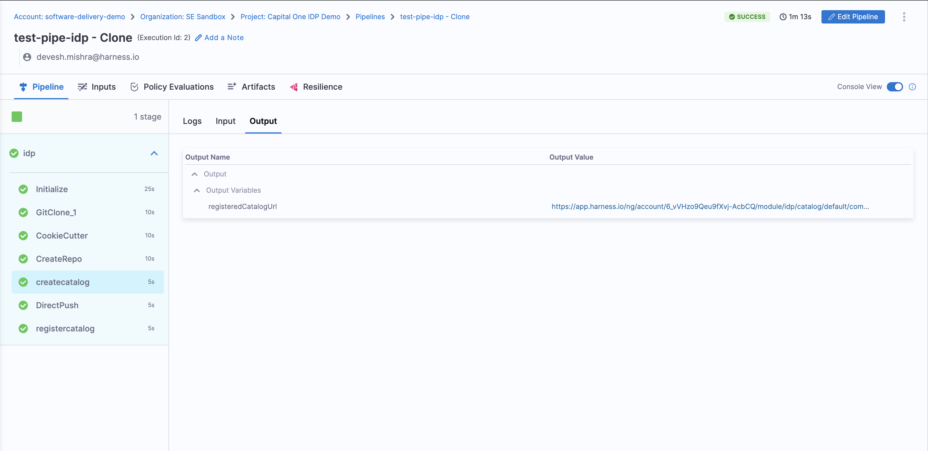 messageContent: " Hello <@<+pipeline.variables.email_id>>, <+pipeline.variables.project_name> project is created using flows in Harness IDP,\\n*Created Catalog Yaml -* <<+pipeline.stages.serviceonboarding.spec.execution.steps.registercatalog.output.outputVariables.catalogInfoUrl>|Link>\\n*Created Repository -* <<+pipeline.stages.serviceonboarding.spec.execution.steps.createrepo.output.outputVariables.repositoryUrl>|Link>\\n*Registered Catlog -* <<+pipeline.stages.serviceonboarding.spec.execution.steps.createcatalog.output.outputVariables.registeredCatalogUrl>|Link>"