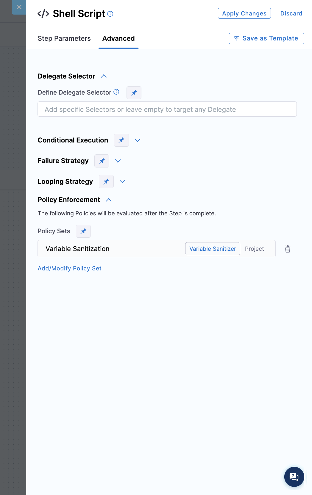 Navigate to the advanced section of the step and select the policy enforcement Accordion.
