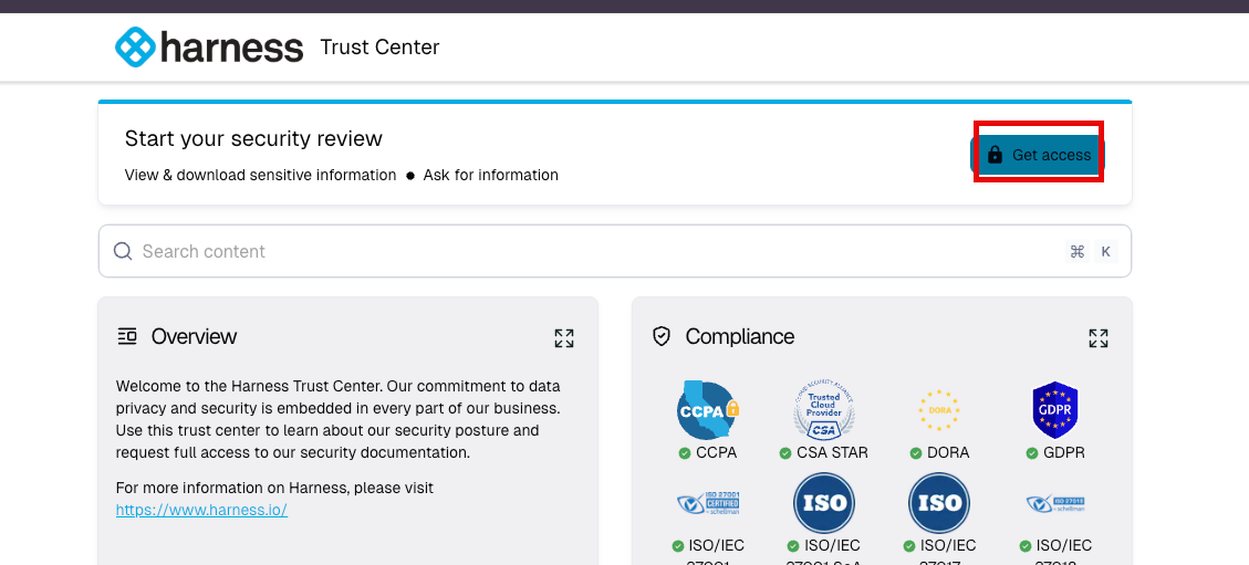 If after signing up for an account on trust.harness.io you do not see the IP Allowlist, please reach out to Harness Support and we will be glad to provide the correct security for access.
