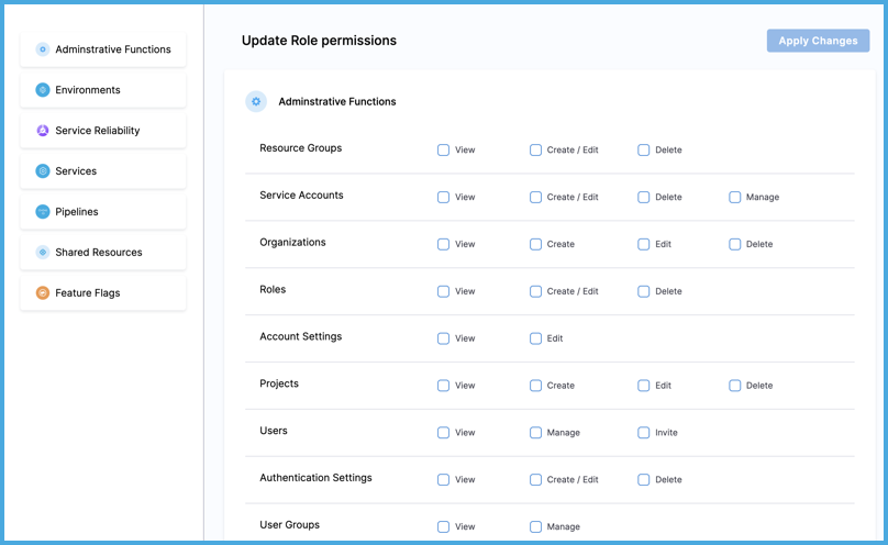 6. Edit the role's permissions, and then select Apply Changes. For details about specific permissions, go to the Permissions reference.