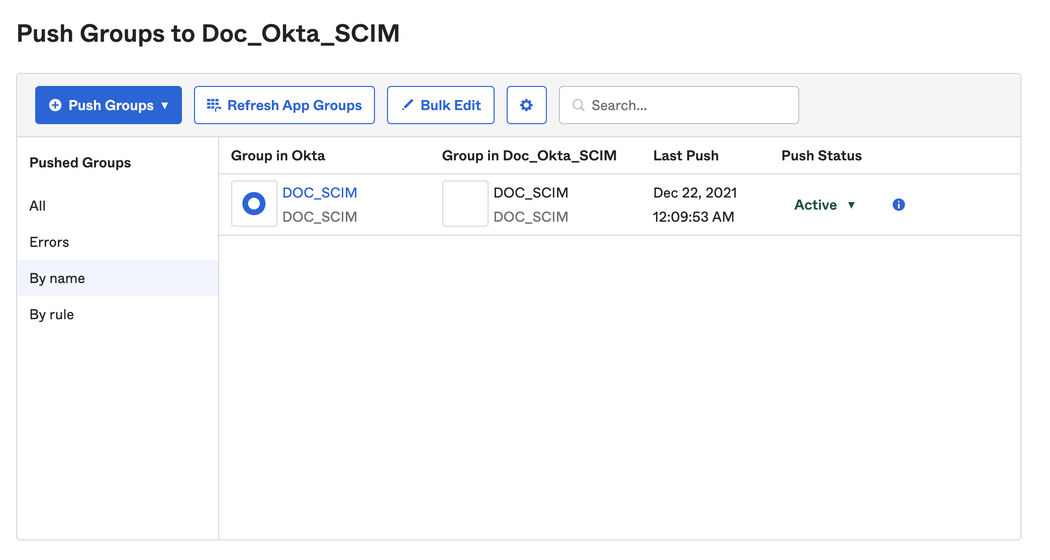 If an Okta-provisioned user group has the same name as an existing user group in Harness, Harness retains both groups. To prevent confusion, you can rename the existing Harness group.