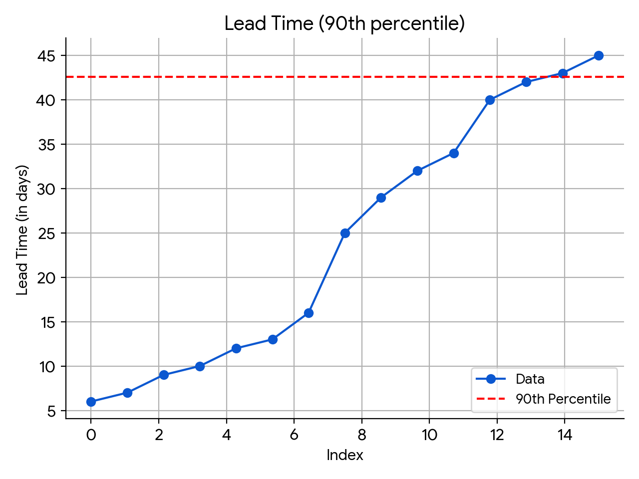 - Step 6: By using the interpolation formula, the system computes the exact lead time for the 90th percentile. This value represents the time within which 90% of tasks or tickets are completed.