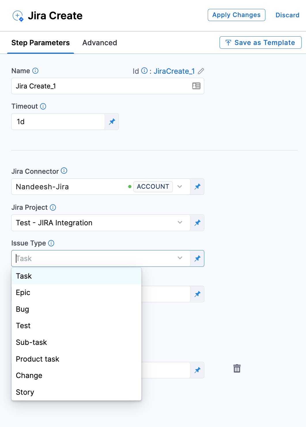emailAddressfield was missing or empty in the Jira API response. The dropdown now falls back to displaying thedisplayNamewhenemailAddressis unavailable, ensuring users can be selected for the Reporter field. (CDS-115386) - Fixed an issue where using expressions in the ServiceNow Create step's Template Name field failed with "Missing template name" error during pipeline planning. The Template Name field now properly resolves expressions for parameterized ServiceNow template selection. (CDS-115272, ZD-95426)