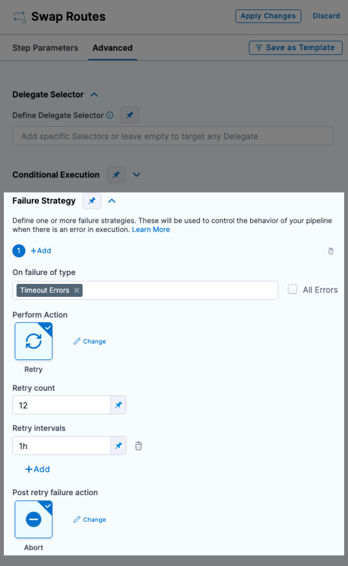 - Fixed an issue where console logs disappeared from the UI when a Manual Intervention failure strategy was triggered in steps like Terraform Plan. The logs now remain visible during Manual Intervention, allowing users to review execution details before making intervention decisions. (PIPE-29254, ZD-77586)